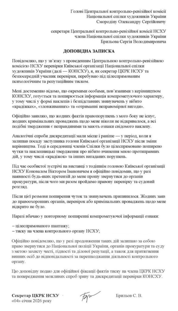 Про це йдеться у доповідній записці секретаря ЦКРК НСХУ Сергія Брильова.
